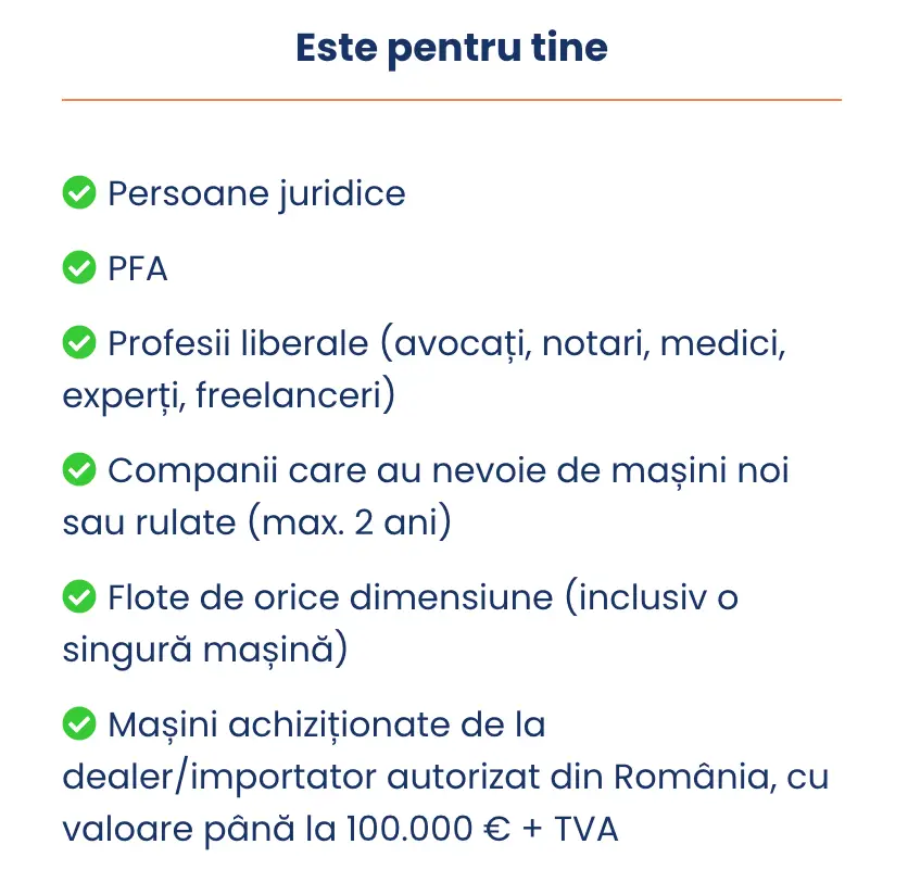 Da, există pachete personalizate și pentru firme mici sau start-up-uri. Nu e nevoie să ai o companie mare pentru a beneficia de avantajele leasing-ului auto.