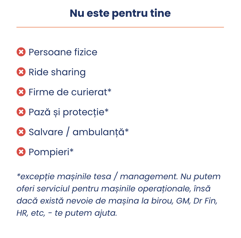 Da, bineînțeles. AGILEFLEET are pachete de servicii dedicate freelancerilor, avocaților, doctorilor sau oricăror alte segmente profesionale.
